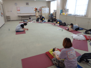 体操の間は、スタッフが赤ちゃんをみていますので、思いっきり体を動かし、リフレッシュすることができます。