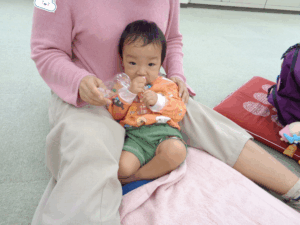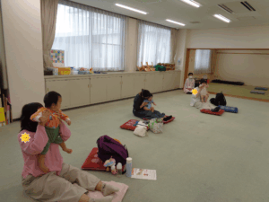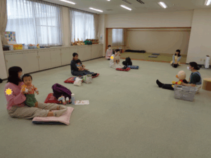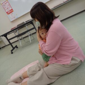 10月15日、今回のすくすく教室は3組の赤ちゃんとお母さんが参加してくださいました。雨が続く中、この日はいいお天気に恵まれた一日でした。
