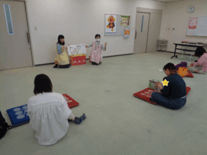 はじめに『白萩西部保育所』の先生による、親子でのふれあい遊びをしました。