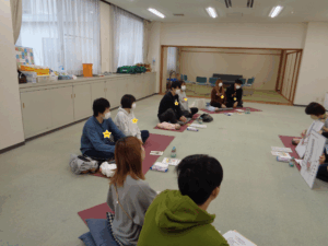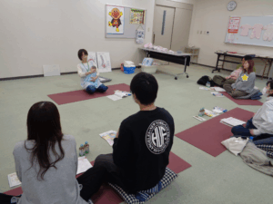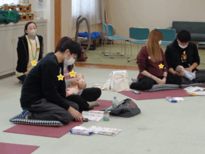 次に、抱っこやおむつ交換、沐浴など、お世話の仕方を人形を使って練習しました。