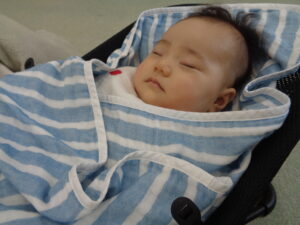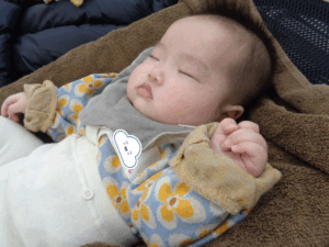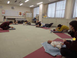 ママの体操の間は、ぐっすり寝てくれていました♡ママたちのマッサージが気持ちよかったようですね!