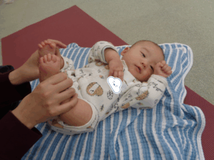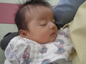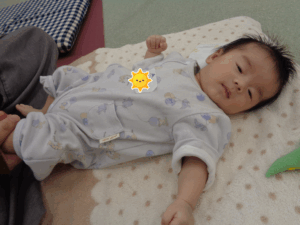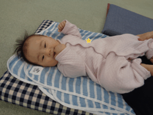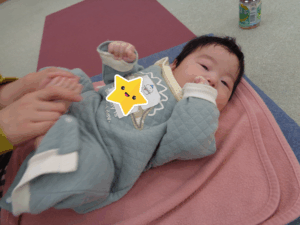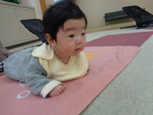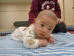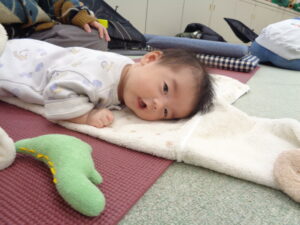 今日初参加の赤ちゃん!2か月に満たないですが、上手に腹ばいしていますね!