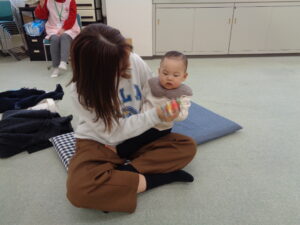 12月17日、今回のすくすく教室は3組の赤ちゃんとお母さんが参加してくださいました。もうすぐクリスマス🎄小さなサンタさんも参加してれました🎅