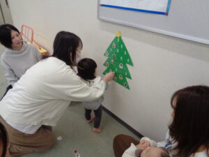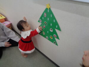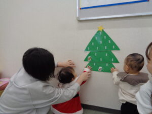 クリスマスのお歌に合わせて鈴を鳴らしたり、クリスマスツリーに飾り付けをして、楽しい時間でした🎄