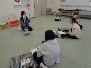 ふれあい遊びと絵本を楽しんだ後は、ママ達の座談会です。