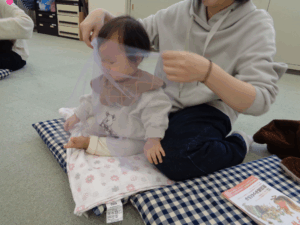 スカーフ遊びでは透けて見えるスカーフが色んなものに変身!