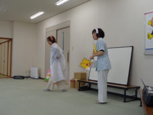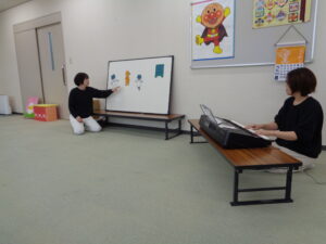 はじめに『さくらんぼ広場』の先生がパネルシアターで楽しい劇を見せてくれました。