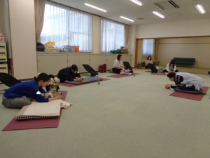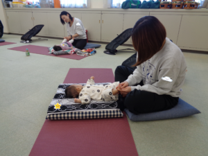 何度も教室に参加してくださっている常連ママさんたち、マッサージもとても上手に行っていました。