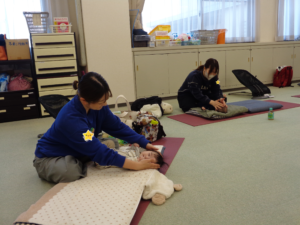 何度も教室に参加してくださっている常連ママさんたち、マッサージもとても上手に行っていました。